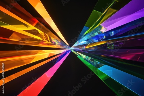 Abstract Vibrant Rainbow Prismatic Light Streaks Background - Colorful Geometric Design for Modern Technology, Art, and Design Projects