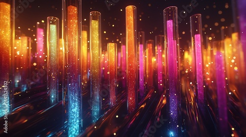 Abstract vibrant tubes filled with shimmering colorful liquids