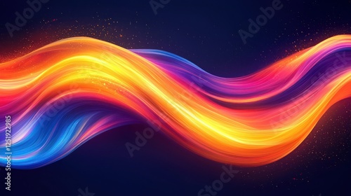 Abstract vibrant wave flowing, dark background, sparks, design element