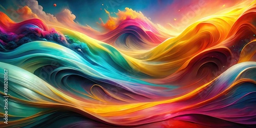Abstract Vibrant Waves: Multicolored Flowing Shapes in Double Exposure Photography for Contemporary Art Enthusiasts
