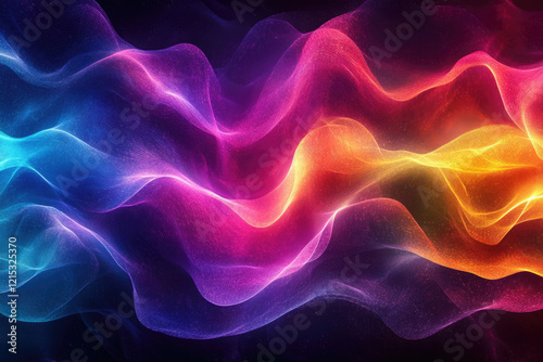 Abstract vibrant waves of blue, pink, and orange flowing in a dark background.