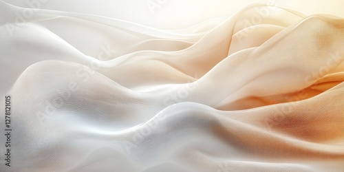 abstract view of flowing, soft fabric creating an ethereal and dreamy atmosphere. The image features delicate folds and waves in shades of orange and white