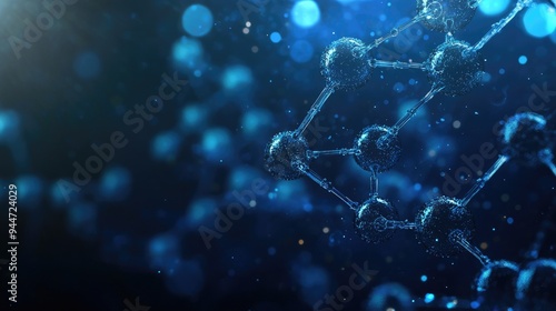 Abstract virtual background featuring particle and molecular structures highlighting genetic and chemical compounds