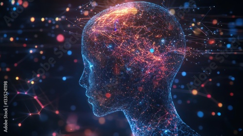 Abstract visualization of a digital human head with neural connections concept