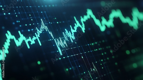 Abstract visualization of financial data trends and statistics in green tones with grid pattern background
