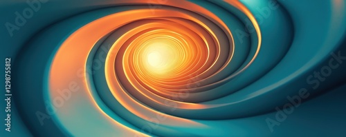 Abstract visualization of spiraling light tunnel with vibrant blue and orange colors creating an immersive and futuristic swirling vortex effect.