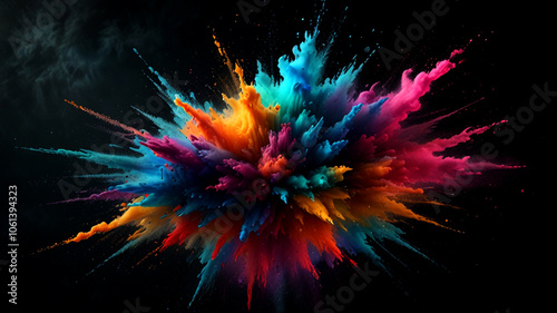 Abstract Vivid colorful Powder Explosion Art with Rainbow of Colors Exploding with Excitement. Cascade of Colors in a Freeze Moment with Artistic Explosion
