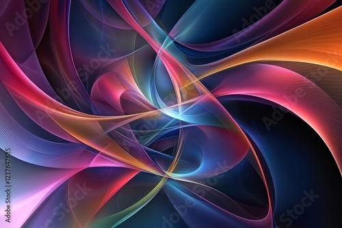 Abstract wallpaper, colorful, dark background, smooth shapes, soft curves.