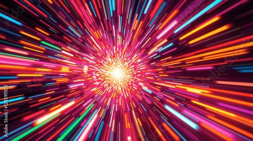 Abstract Warp Speed Hyperspace Effect with Colorful Light Rays