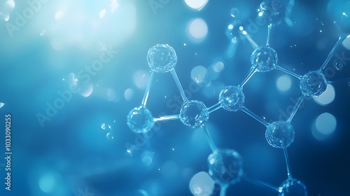 Abstract Water Molecule Structure with Blue Background and Bokeh