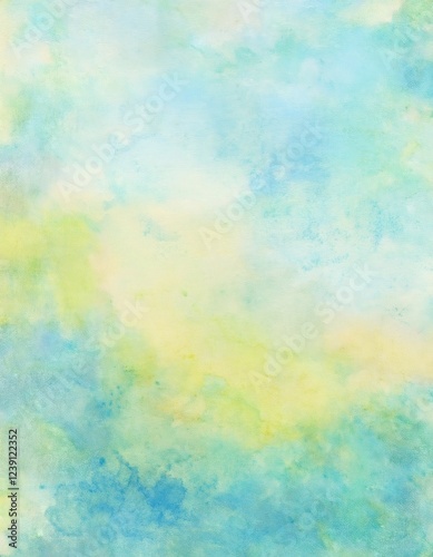 Abstract watercolor background blending blue, green and yellow colors creating a dreamy atmosphere