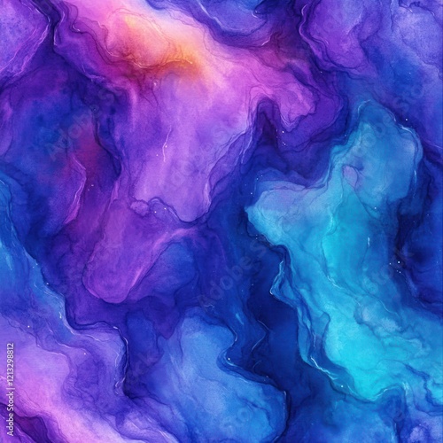 Abstract Watercolor Background Purple Turquoise Fluid Seamless Pattern