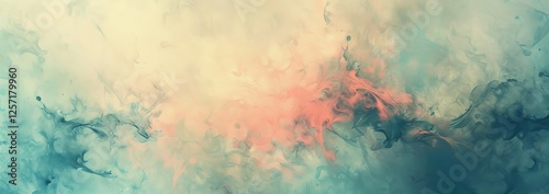 Abstract Watercolor Background With Flowing Coral Pink, Teal, Cream. Fluid Art Design For Modern, Decorative, Dreamy Artistic Texture.