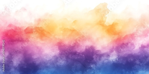 Abstract watercolor background with vibrant colors blending in a cloudy effect.
