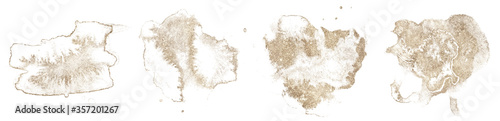 Abstract watercolor gold shapes on white background. Color splashing hand drawn vector