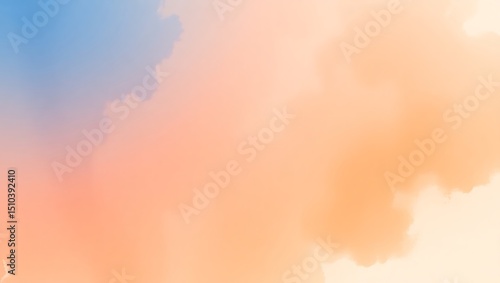 Abstract watercolor painting with soft pastel colors blending sky blue peach and light orange hues creating a serene vibe