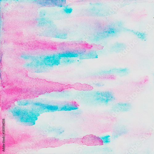abstract watercolor pink blue background with horizontal strokes, streaks, splashes and lines - hand drawn square shape