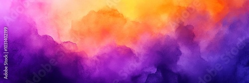 Abstract watercolor sky with a gradual color transition from purple to orange, symbolizing hope, creativity, energy, dreams, and imagination.