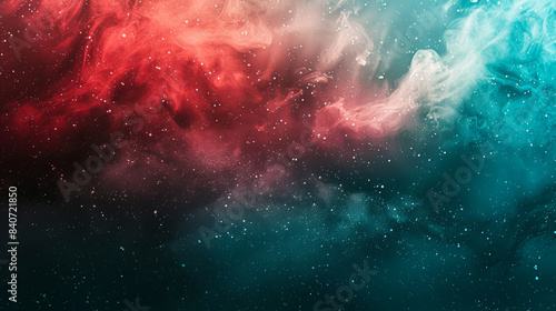 Abstract watercolor space scene, gradients of teal and crimson, glowing stars, swirling nebulae, gradient background, empty area for text