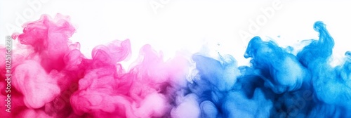 Abstract watercolor splash in pastel pink and blue, creating a dynamic and ethereal composition. The colors blend and swirl, evoking feelings of movement, energy, and dreams.