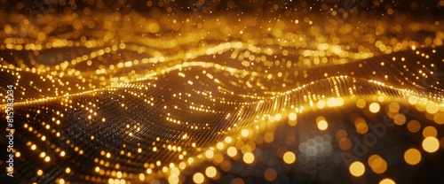Abstract Wave Background With Many Glowing Particles Represents A Musical Wave Or Digital Network, Exuding Energy And Dynamism With A Visually Engaging Design, 3D Rendering