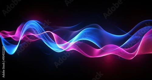 Abstract wave design with vibrant blue and pink colors on a dark background.