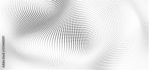 Abstract wave halftone black and white. Monochrome texture for printing on badges, posters, and business cards. Vintage pattern of dots randomly arranged