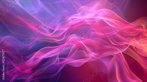 Abstract wave in iridescent neon-rainbow shades, pink, purple, red, blue. Waves of smoke or fabric flying in the wind. Iridescent fabric, holographic texture. Banner background with space for text