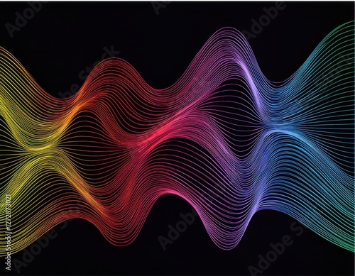 Abstract wave lines pattern dynamic colorful light flowing isolated on black background. concept of music, party, technology, modern. Abstract flowing wavy lines. Colorful dynamic wave