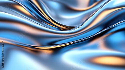 Abstract wave of blue and silver textures creating a smooth, dynamic visual effect.