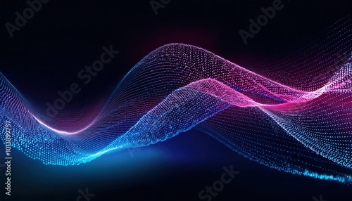 Abstract wave of data dots with a gradient transition from light blue to deep pink.
