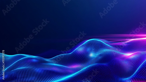 Abstract Wave Pattern with Glowing Blue and Purple Lights over Dark Background for Futuristic Concepts