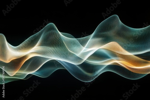 Abstract wave patterns in vibrant colors flowing over a dark background. Generative AI
