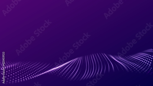 Abstract wave with moving dots. Flow of particles. Vector cyber technology illustration.