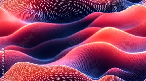Abstract waveforms: red and blue fluid dynamics in digital art