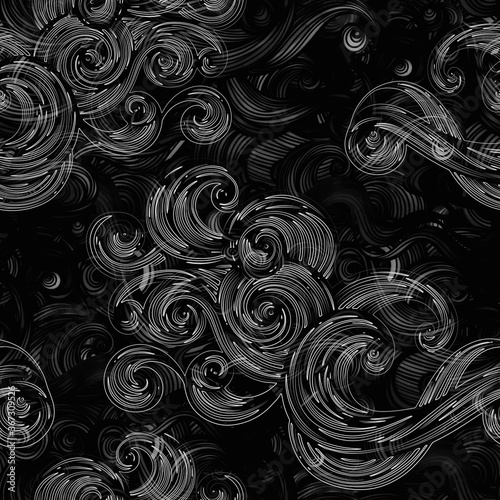 Abstract waves, curls, clouds seamless pattern
