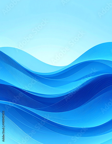 Abstract waves in varying shades of blue create a serene, flowing pattern against a light background, evoking a sense of calm and tranquility