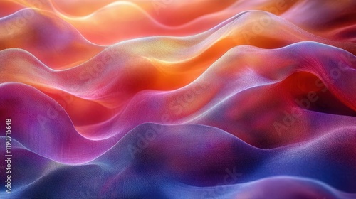 Abstract Waves in Vibrant Colors of Red, Orange, Blue, and Purple Representing Fluid Motion and Depth in a Dreamlike Landscape