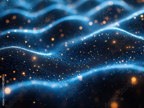 Abstract waves of blue light and glowing particles create a dynamic visual.