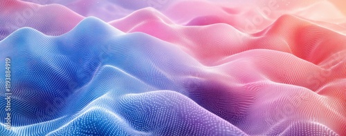Abstract Waves of Colorful 3D Rendered Surface Representing Digital Flow, Fluid Movement, and Dynamic Patterns in Shades of Pink, Blue, and Purple