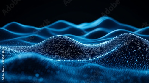 Abstract waves of glowing blue particles.