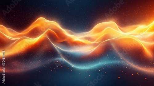 Abstract waves of glowing colors in orange and blue create a stunning digital background, perfect for technology and innovation themes.