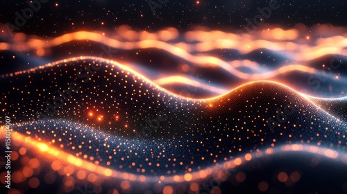 Abstract waves of glowing particles create a dynamic, ethereal landscape.