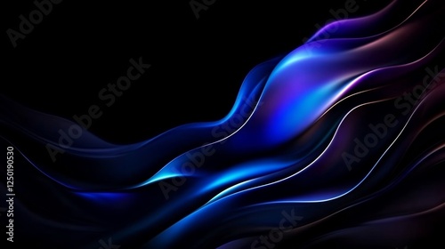 Abstract Waves of Light Flowing in Vibrant Shades of Blue and Purple on a Dark Background