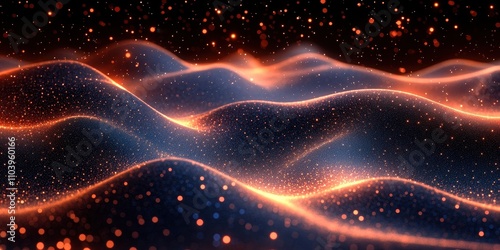 Abstract Waves of Light in Orange and Blue, Digital Art Background for Design
