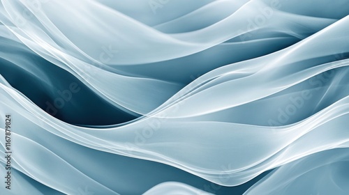 Abstract waves of translucent blue fabric creating a serene and calming atmosphere.