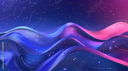 Abstract waves of vibrant colors undulate against a cosmic backdrop, creating a dreamy atmosphere