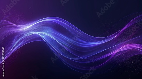 Abstract waves of vibrant purple and blue light create a serene digital background. Perfect for technology and creative designs.