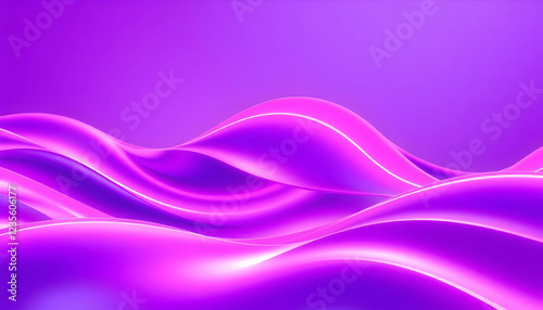 Abstract waves, vibrant purple and blue colors, smooth glossy curves, dynamic fluid motion, neon glow, futuristic design, digital art, high contrast, luminous gradients, sleek metallic texture, 3D ren