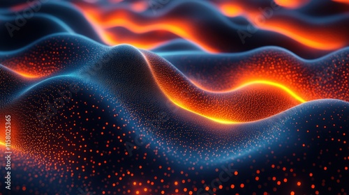 Abstract waves with glowing particles, creating a dynamic and vibrant visual effect.